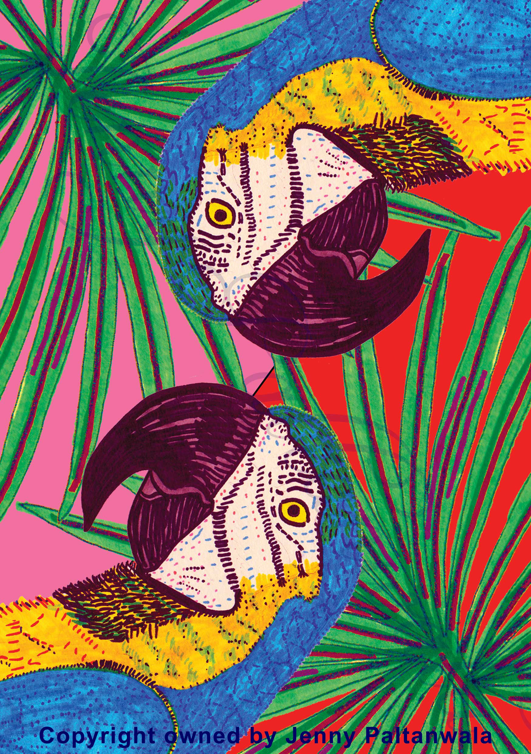 Jenny Paltanwala is a London based bird artist who specialises in drawing parrots. Jenny loves using bright vibrant colours and has been sketching birds since she was a child.